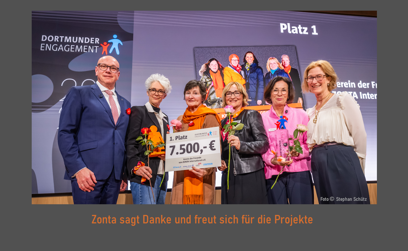 DANKE an das Lensing Media Hilfswerk, die Jury, die Ruhrnachrichten und Radio 91,2 und Alle, die für uns gestimmt haben: Die beiden Zonta Clubs Dortmund und Dortmund-Phoenix haben den 1. Preis des "Dortmunder Engagment" mit einem Preisgeld von 7.500 € gewonnen. Wir werden mit diesem Preisgeld das Projekt "Männer ohne Gewalt" von Die Brücke e. V. unterstützen. Denn wir erheben für und mit anderen die Stimme, unterstützen deren wichtige Hilfsprojekte finanziell und schaffen Öffentlichkeit für dieses dramatische, gesellschaftliche Thema.
